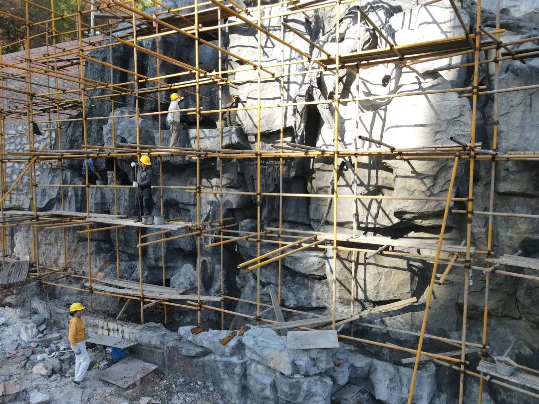 小区园林假山正在建设中