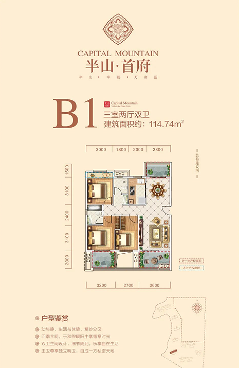 小面积也可满足三世同堂,建面约96㎡/114㎡舒适三房,灵动户型,多一间可为次卧、茶室或书房,随心变化,悠享三代同堂之乐!