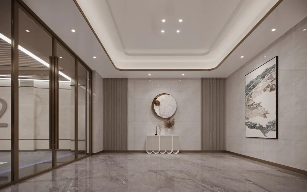格栅装饰的车道吊顶与线型灯饰相得益彰