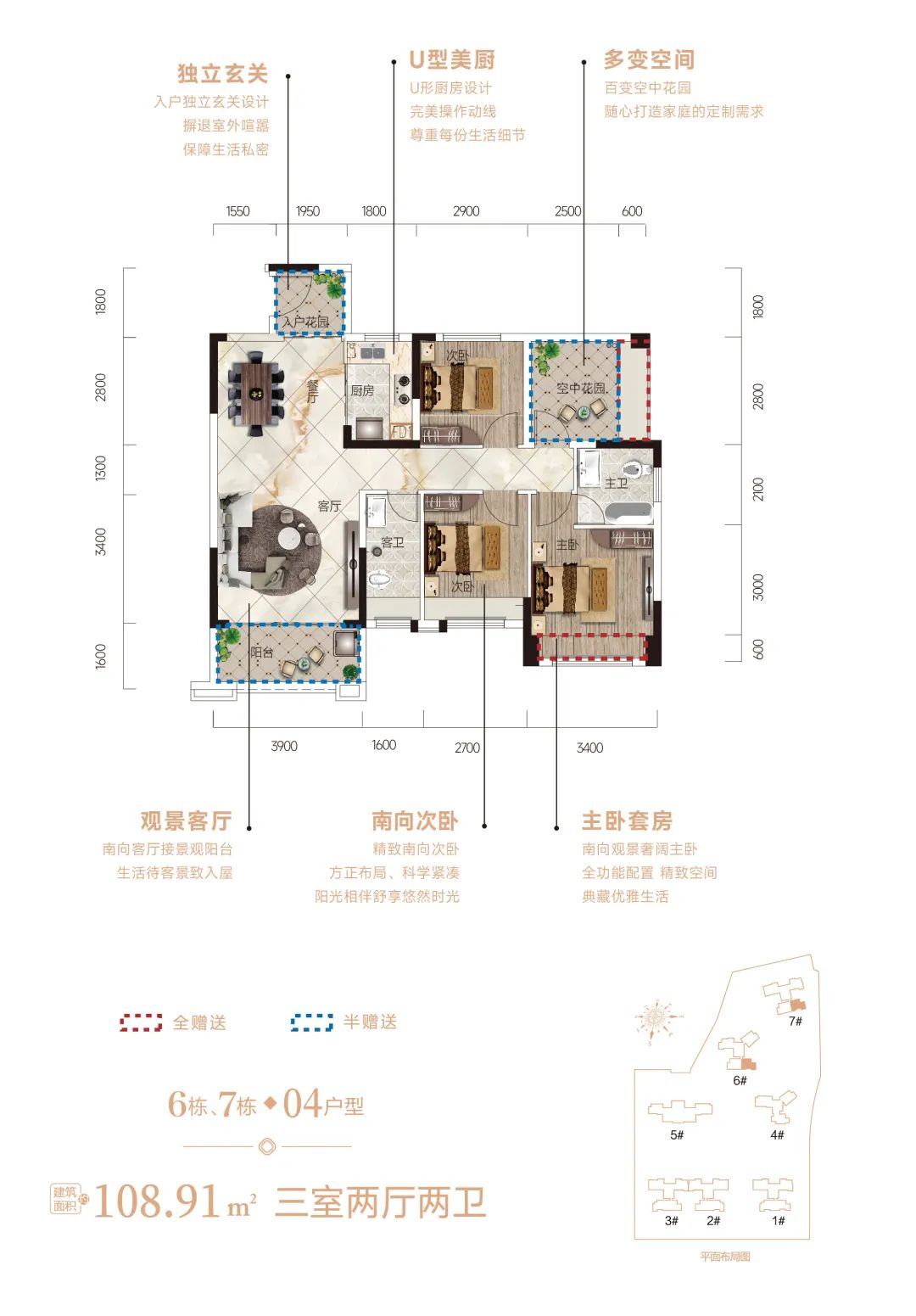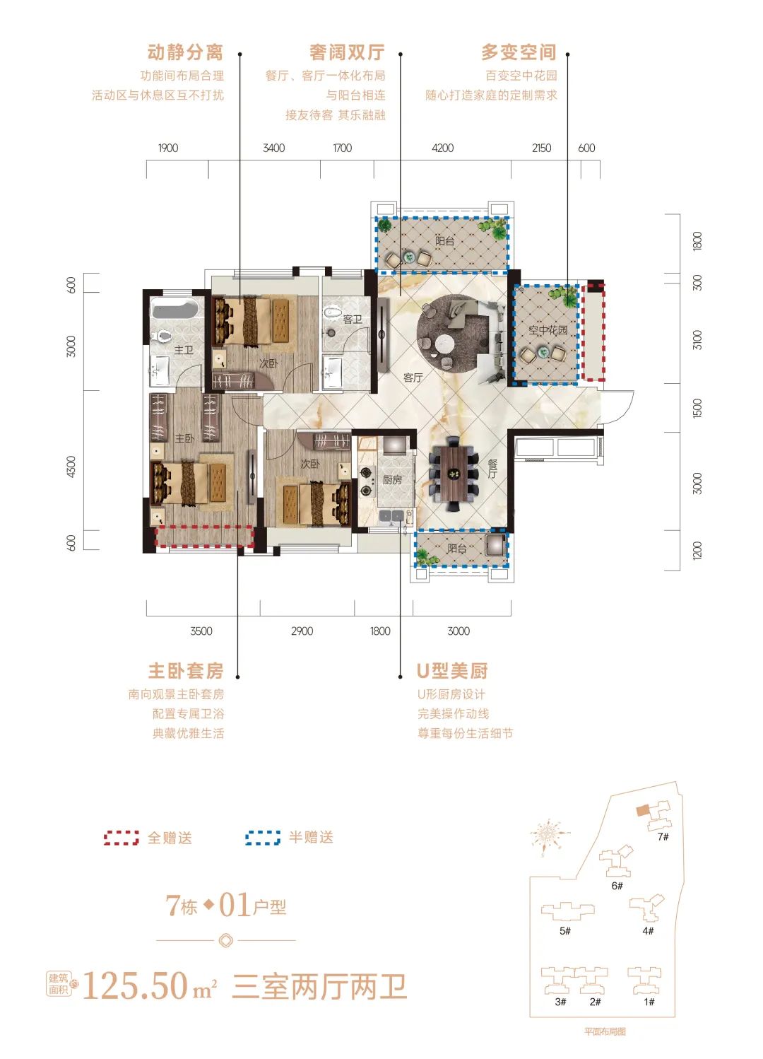 7#栋新品加推,提供了建面约125.5㎡、115.42㎡、96.1㎡、108.91㎡四种不同面积的户型选择,满足了大多数家庭对于理想生活空间的向往。户户多送一间房,让您尽享自由舒适的居住体验,为您和您的家人创造一个宜居且温馨的家园。