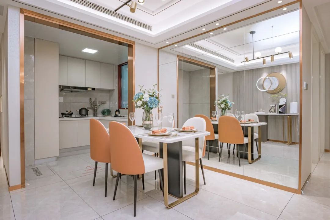 文华国际餐客厨一体化设计,畅连南向阳台,视觉效果更舒朗开阔,空间也更加通透。闲暇时,陪孩子在客厅玩耍,与家人尽情享受三餐,亦或是邀朋约友畅谈,都能在这片天地尽情享受。