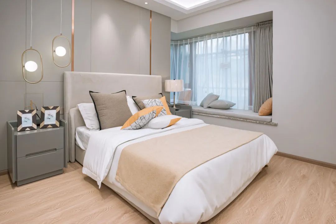 项目约3.7M开间主卧,采用套房式设计,南向瞰景飘窗,延伸景观视野,慵卧其上,窗外美景尽收眼底;独立卫生间,避免晨起洗漱时的拥挤;可按需求规划设计宽敞型步入式衣帽间,完美实现优雅起居的生活理想,满足男女主人不同的收纳需求。