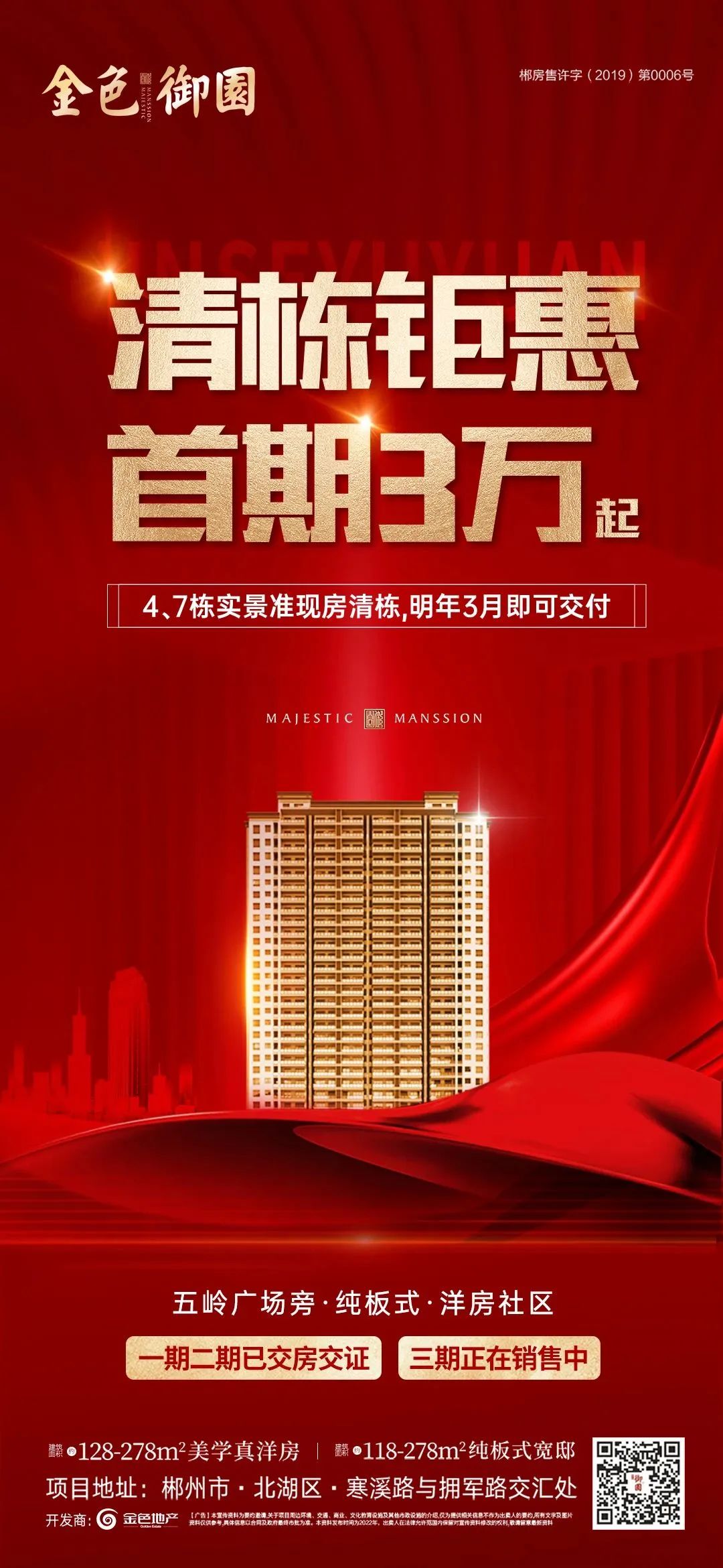 多数人向往,少数人珍藏。金色御园以红盘实力,打造郴州品质人居,清栋特惠,首期款3万起,臻席递减中!还等什么,赶快上车,圆梦美好生活吧!