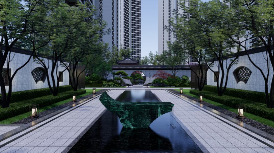 如山水画卷般的园林空间,是人们释放身心的场所。青云和著汲取“清晖园、梁园、余荫山房、可园”四大岭南名园精华,以围合式布局打造约4.5万方“二轴二环一带一心十主题”的岭南山水园林,园内设有湖、亭、阁、桥、水榭、曲廊等景观,配以众多品种的灌木、地被,营造出可赏、可游、可玩的岭南山水诗意园林。