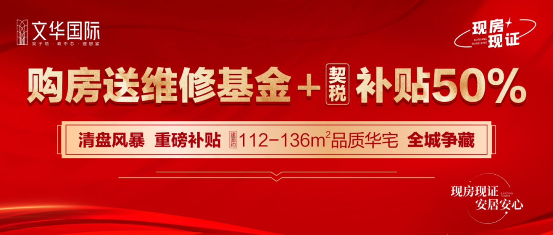 国庆优惠,恰逢项目清盘,还有政府的政策补贴,此时上车正是性价比最高的时候。文华国际,现房现证的高档楼盘,清盘才有的特惠,5字头就能买到六七千的品质楼盘,国庆期间购房送维修基金和50%契税补贴,还有国庆特价房限时抢购!