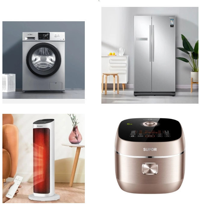 美的滚筒洗衣机、双开门冰箱、美的火锅机