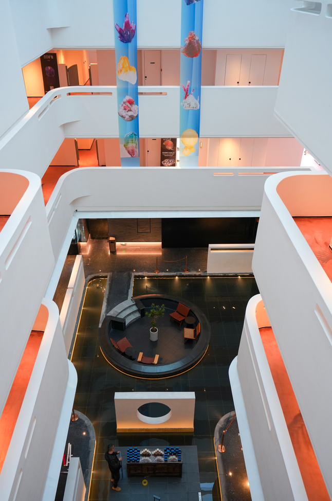 十畝生活度假酒店的设计灵感来源于当下的生活方式,不断打破传统的展览空间概念。以酒店为媒介,洞穴客房作为展览单元,让艺术品从传统的展览空间中解放出来,融入到生活化的场景中。这不仅实现了生活与艺术的融合,也搭建了一个可跨界融合、倡导理性收藏的艺术品交易与交流平台。通过这样的设计,十畝温泉度假酒店积极影响着郴州的艺术生态,推动了当地文化产业的发展。