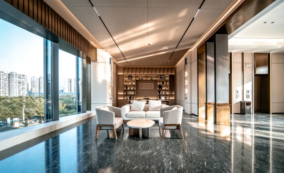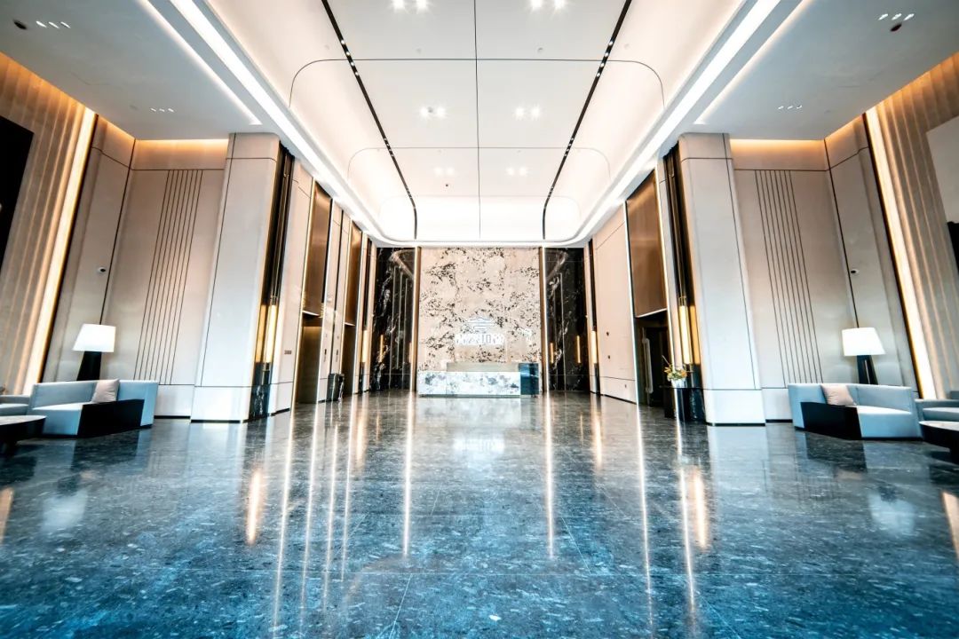 入户大堂作为归家的门面,青云和著为匹配居者高阶身份,不吝成本匠造星级酒店式社区大堂。宽约33米、高达17米的豪宅气派门头,配置超高不锈钢入户大门、进口莱姆石岩板、超宽金属星光顶雨棚、高反射玻璃幕墙、铝板黄金切割工艺,尽显归家尊崇感。