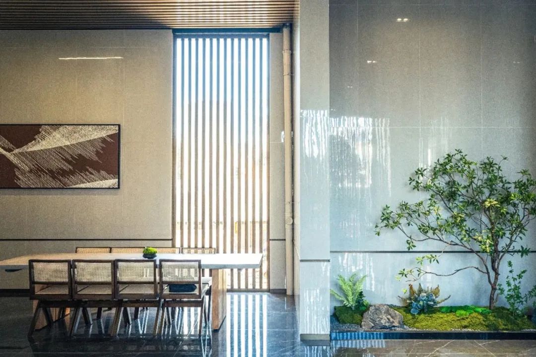 汲取岭南名园精髓,巧妙融合东方元素与现代技艺,以围合式布局打造约4.5万方“二轴二环一带一心十主题”的岭南山水园林。将湖、亭、阁、桥、水榭、曲廊等景观融入其中,配以众多名贵树种,将一幅生动而富有朦胧美感的山水画卷浓墨展现。