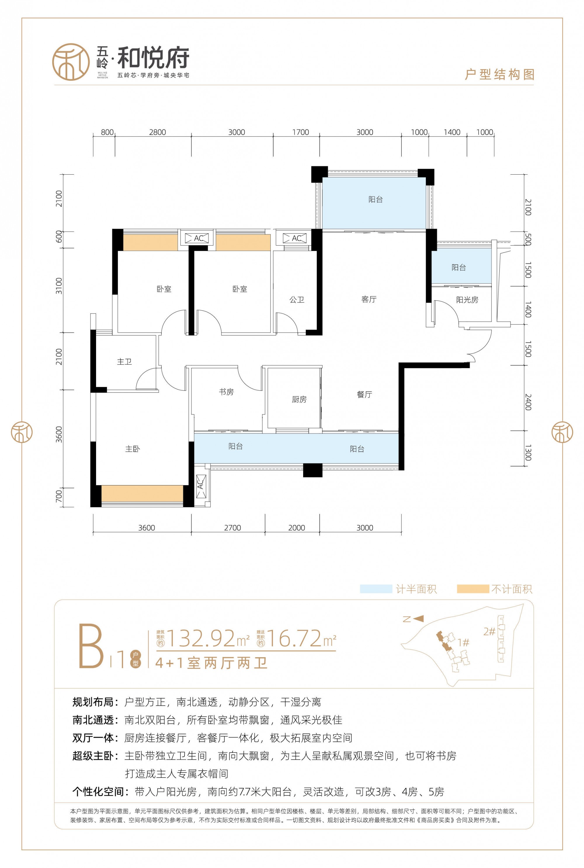 1#栋:建面约109㎡3+1房、117㎡4房、131㎡4+1房、132㎡4+1房;