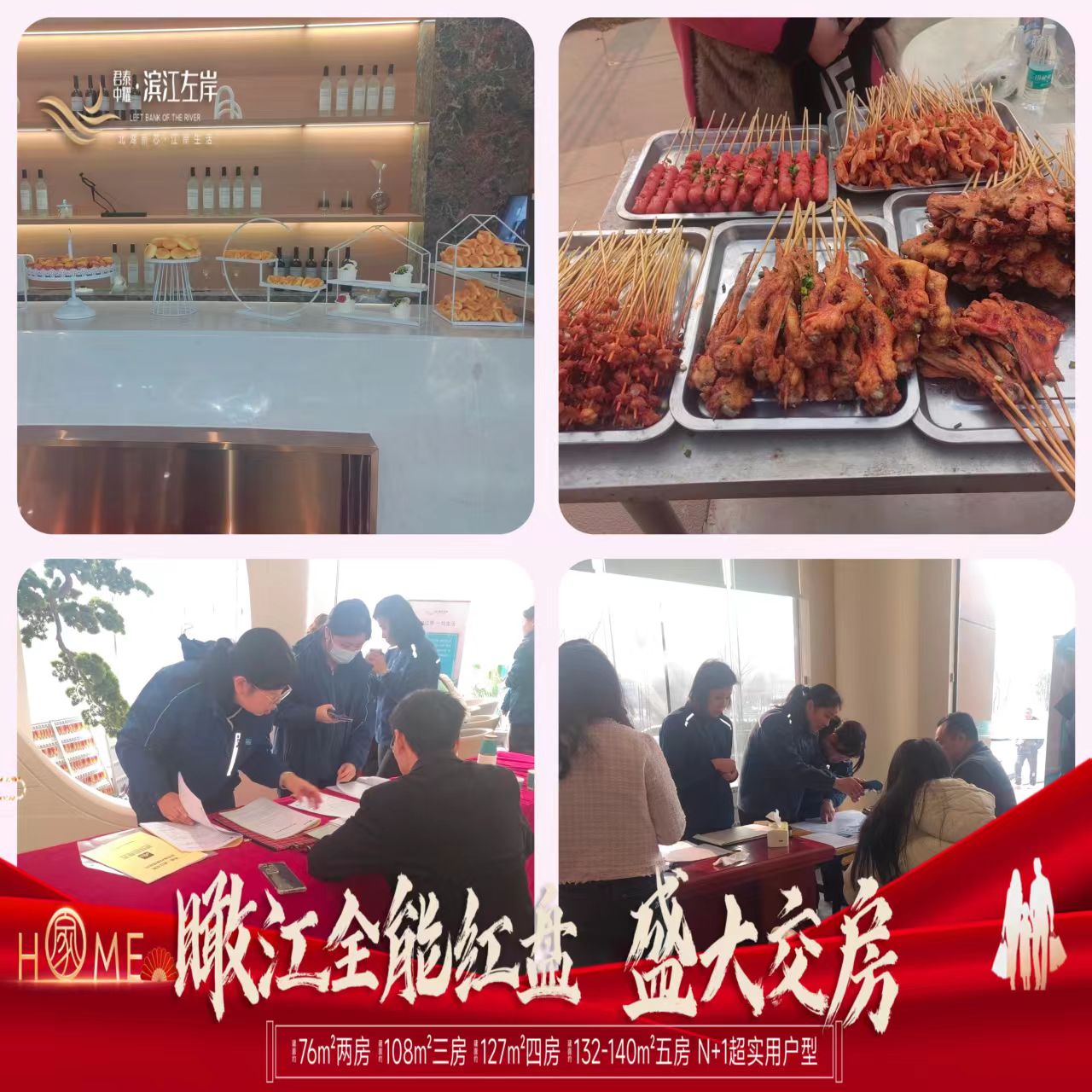 交房流程示意图清晰明确,置业顾问及碧桂园物业的工作人员的悉心引导下,按程序办理收房。开发商还贴心的为业主准备了伴手礼,茶水、点心及烧烤等美食供业主享用。